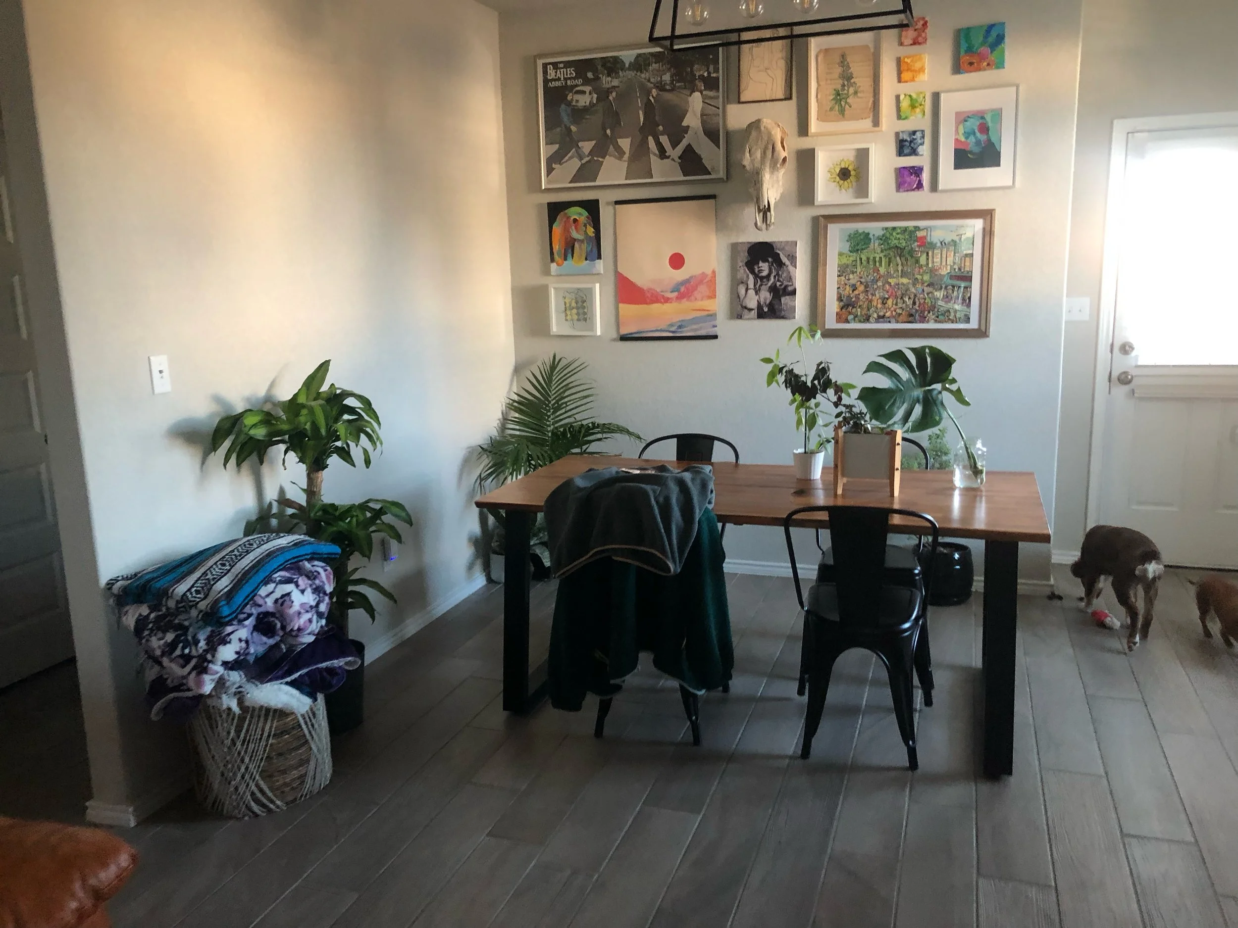 We went with four Behr flat finish paints in warm, neutral tones to complement our dining area: