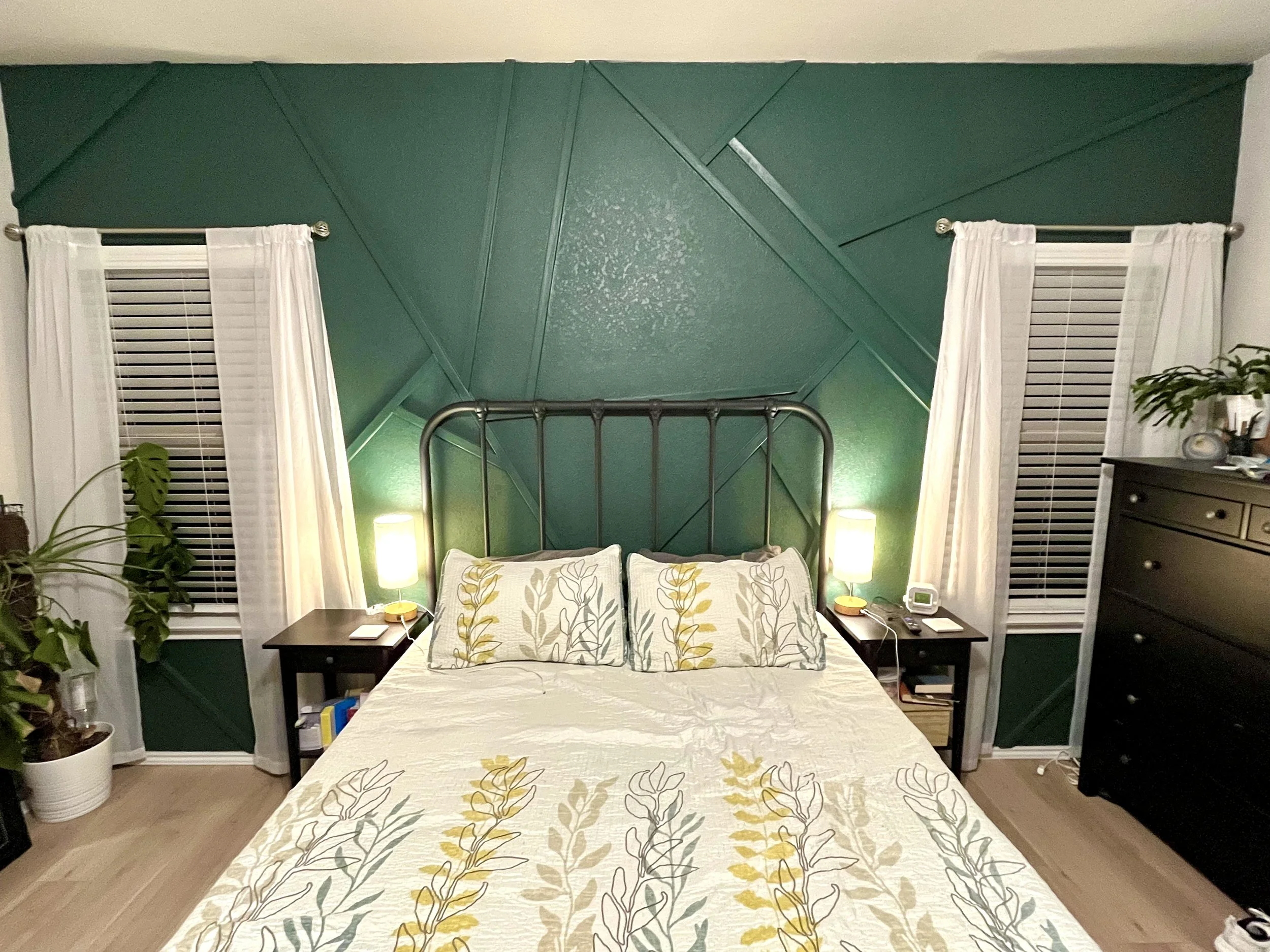 This geometric accent wall was the very first project we tackled in our home, and years later, we still love it—imperfections and all. Every wall will turn out a little differently depending on the size of your space and the design you create, but that’s exactly what makes it so personal and unique.