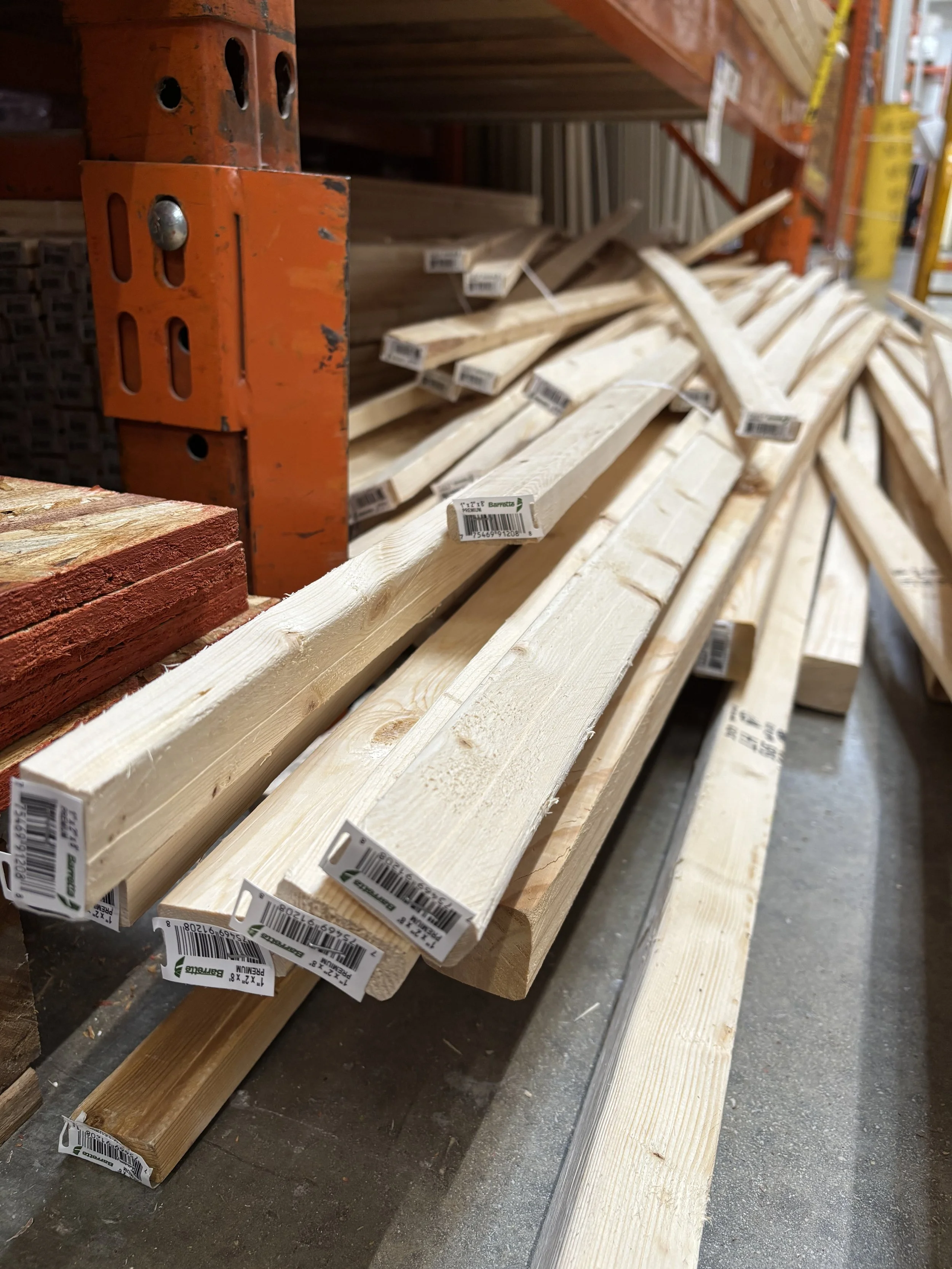1” x 2" pine boards (8 ft; natural or primed pine works best)